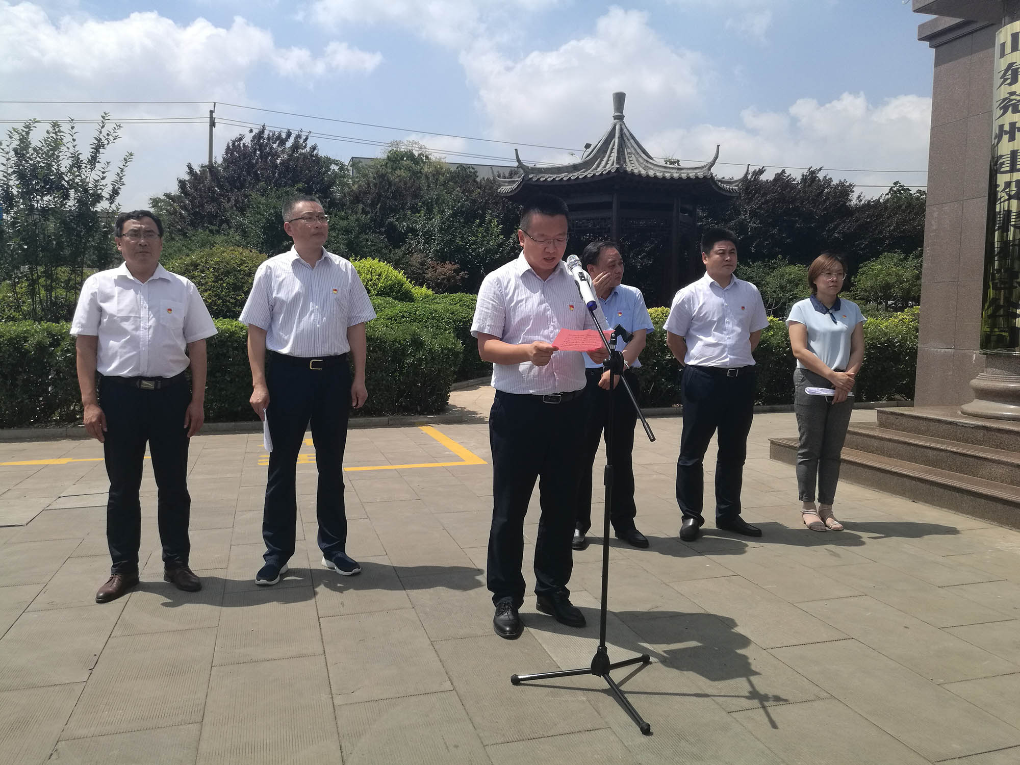 十一時(shí)許,在區(qū)住建局葛繼生副局長(zhǎng)主持的公司黨委成立揭牌儀式上,區(qū)委組織部副部長(zhǎng)吳占華、區(qū)委區(qū)直機(jī)關(guān)工委書記顏景軍分別致辭,并共同為山東兗建黨委揭牌。