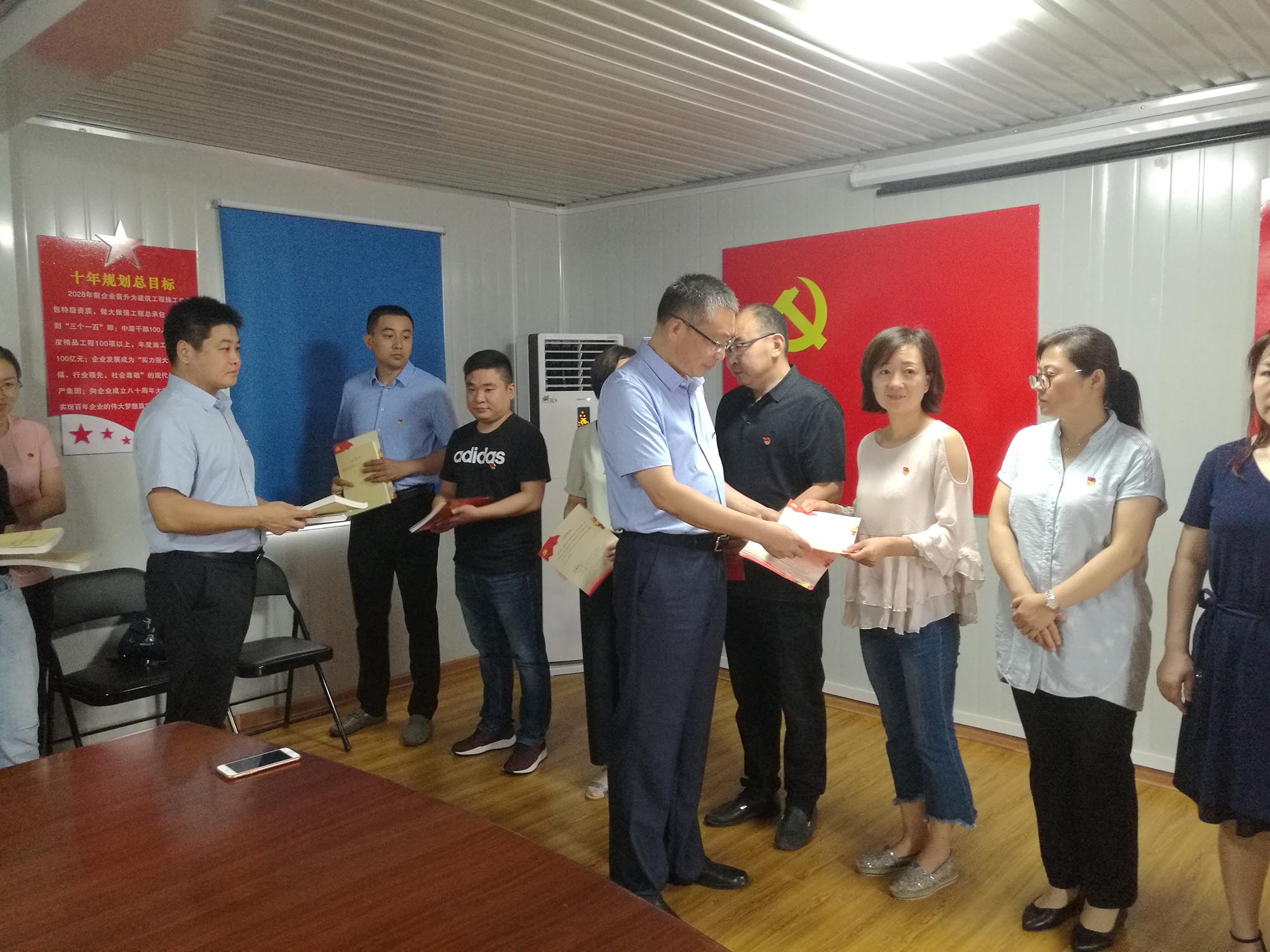 最后,區住建局黨委書記、局長鄒紅就支部建設、黨員教育管理、支部聯建工作做了重要指示。她指出,成立山東兗州建設總公司西護城河片區建設指揮部臨時黨支部,開展“支部建在項目上、黨旗飄在工地上”黨建活動,其目的就是推進黨建工作向縱深發展,增強黨組織的凝聚力、向心力和戰斗力,充分發揮基層黨組織在項目一線工作中的核心領導作用。局機關黨委將以山東兗州建設總公司西護城河片區建設指揮部臨時黨支部為試點,隨后逐步在住建系統承擔的區重點項目中全面推廣。通過組織共建、技術共享、項目共研、安全共創,進一步加強基層黨建工作水平,促進黨建工作積極融入項目、創造價值。形成優勢互補、共同發展的良好局面,為共建雙方的黨員同志發揮先鋒模范作用搭建平臺,實現各自在黨建工作上的相互促進和共同提高。